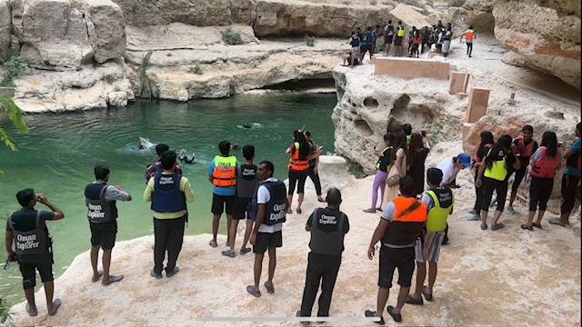 أما ذروة المغامرة فكانت في وادي شاب بين قمم الجبال الشاهقة والبرك المائية الزرقاء التي نحتت ببراعة بين المنحدرات الصخرية، تحفّها الأشجار والنخيل من الجانبين، ولم تنتهِ الإثارة بعد، بل وصلت إلى ذروتها في «هوية نجم»، تلك الحفرة الطبيعية العميقة التي تتميز بمياهها الصافية وسط واحدة من أجمل المنتزهات الطبيعية في عُمان