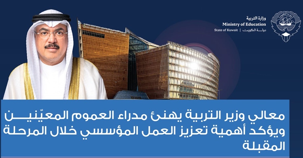 وأكد حرص الوزارة على الدفع بالكفاءات الوطنية المؤهلة لتولي المواقع القيادية، بما يسهم في تحقيق أهدافها وخططها للارتقاء بالمنظومة التعليمية.