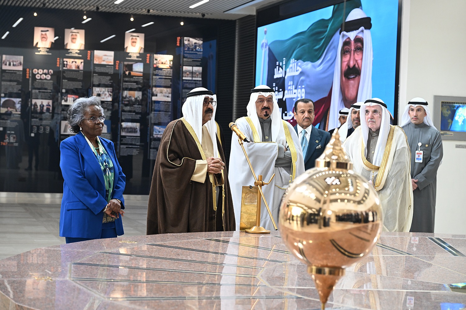 ووصل موكب سموه ، حيث استقبل بكل حفاوة وترحيب من قبل سمو الشيخ أحمد العبدالله رئيس مجلس الوزراء ومدير عام مؤسسة الكويت للتقدم العلمي الدكتورة أمينة رجب فرحان وأعضاء مجلس الإدارة.