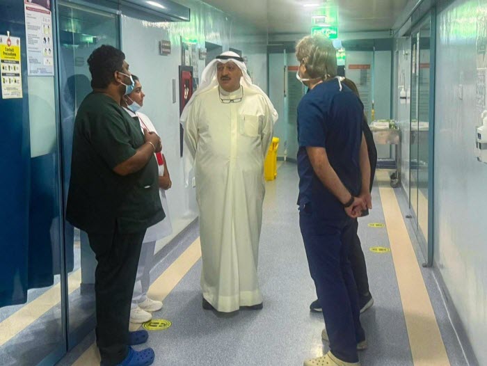قام وزير الصحة الدكتور أحمد العوضي أمس بزيارة إلى مستشفى الصباح للاطمئنان على الحالة الصحية لأحد منتسبي الجهات الأمنية الذي أدخل إلى المستشفى في وقت سابق إثر إصابة تعرض لها أثناء تأدية واجبه الوطني في أحد المواقع داخل دولة الكويت نتيجة الاعتداءات التي شهدتها البلاد.