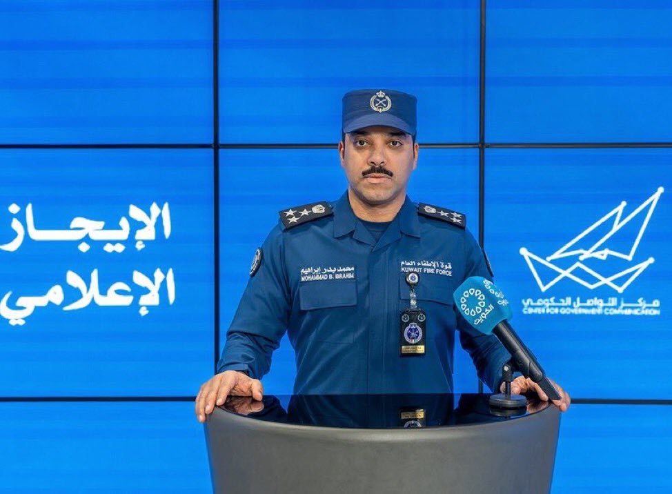 وبين أن جميع منتسبي قوة الإطفاء العام يواصلون أداء واجبهم الوطني بكل يقظة وإخلاص مستمرين في تنفيذ مهامهم بعزم واضعين حماية الأرواح والممتلكات والأمن المجتمعي فوق كل اعتبار. وسأل العميد الغريب الله تعالى أن يحفظ الكويت وشعبها من كل مكروه في ظل القيادة الحكيمة لحضرة صاحب السمو أمير البلاد القائد الأعلى للقوات المسلحة الشيخ مشعل الأحمد الجابر الصباح حفظه الله ورعاه وسمو ولي عهده الأمين الشيخ صباح خالد الحمد الصباح حفظه الله