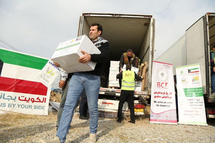 وفي العراق واصلت الكويت تقديم المساعدات الانسانية للاجئين السوريين في اقليم كردستان العراق من خلال توزيع اكثر من 61 طنا من المواد الغذائية مقدمة من الهيئة الخيرية الاسلامية والامانة العامة للأوقاف الكويتية.