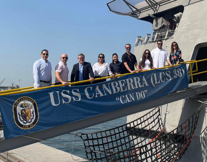 رست السفينة الحربية الأميركية يو إس إس كانبيرا (uss canberra) في ميناء الشعيبة، في زيارة تعد الأولى لسفينة تابعة للبحرية الأميركية إلى الكويت منذ عام 2021. ووصفت السفارة الأميركية في البلاد الزيارة بأنها تجسيد للشراكة الدفاعية الراسخة بين الولايات المتحدة والكويت، مشيرة إلى أن القائم بالأعمال الأميركي ستيف بتلر وعدد من موظفي السفارة قاموا بجولة على متن السفينة، حيث جددوا الالتزام المشترك بين البلدين بالأمن والازدهار في الخليج العربي.