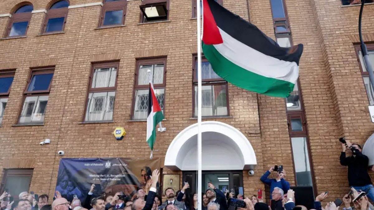 شهدت العاصمة البريطانية لندن لحظة تاريخية برفع علم فلسطين فوق مبنى السفارة الفلسطينية، بعد إعلان الحكومة البريطانية رسميًا اعترافها بدولة فلسطين.