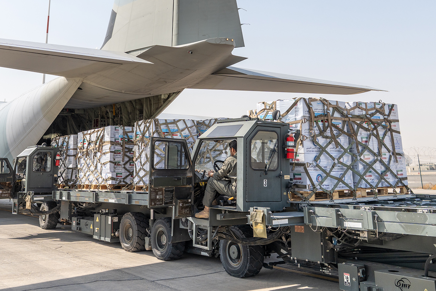 يذكر أن جمعية الهلال الأحمر الكويتي تولت اليوم تجهيز المساعدات الإنسانية المقدمة من مبرة الكنادرة الخيرية بما يضمن تلبية الاحتياجات الغذائية الأساسية لهم كما عملت على تجهيز الطائرات السابقة منها 8 طائرات إلى الأردن و7 إلى مصر لغاية الآن.