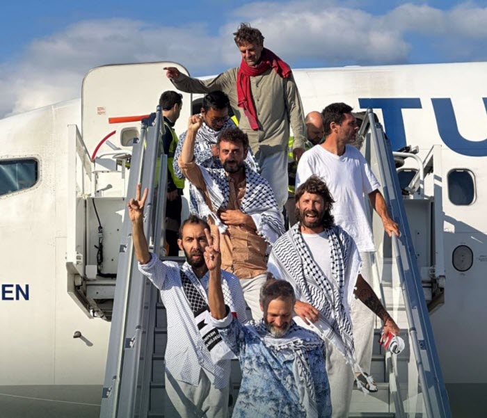وكانت طائرة تحمل ناشطين من أسطول الصمود وصلت إلى تركيا عقب ترحيلهم من الكيان المحتل.