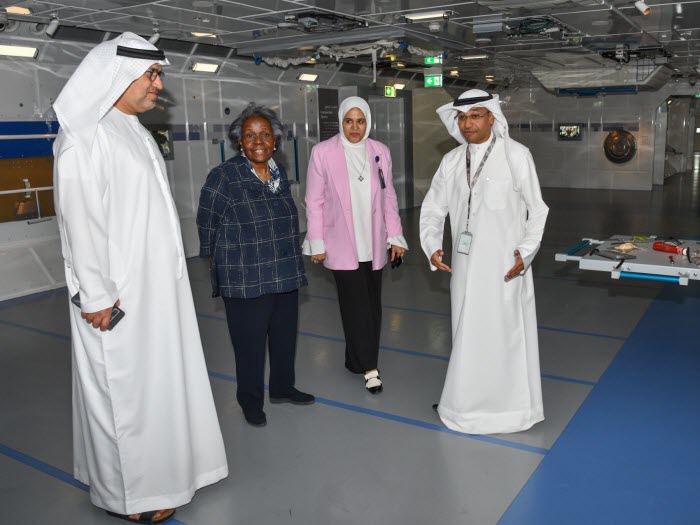 وأعرب عن السعادة بعرض (مركز الشيخ عبدالله السالم الثقافي) مقتنيات من رحلة الإمارات إلى الفضاء وأفلام توثق هذه الرحلة، مؤكداً أن هذا العرض يشكل حافزاً وإلهاماً لشباب الخليج ولمقدرتهم على خوض مثل هذه الرحلات والتخصصات. وقام السفير النيادي والدكتورة فرحان بجولة في المتحف، قدم خلالها ممثل متحف الفضاء خالد الجمعان صورا للتعاون بين البلدين في مجال الفضاء والتحديثات التي تمت على محتوى قاعة (استكشاف الفضاء) بإضافة تجارب رواد الفضاء الإماراتيين في محطة الفضاء الدولية علاوة على عرض بعض مقتنياتهم وشعارات رحلة الفضاء التي تعرض حالياً في قاعة (عابر المجرات) التي تتناول تاريخ الفلك والفضاء بدول مجلس التعاون الخليجي. وتأتي هذه الخطوة استكمالاً للتعاون القائم بين (مركز محمد بن راشد للفضاء) و(مركز الشيخ عبدالله السالم الثقافي) في عرض مواد مرئية وتوثيقية حول مسيرة الإمارات في استكشاف الفضاء والتي تتضمن مقاطع فيديو لرحلة وزير الدولة للشباب الاماراتي الدكتور سلطان النيادي إلى محطة الفضاء الدولية ومشاهد من تدريبات رواد الفضاء الإماراتيين.
