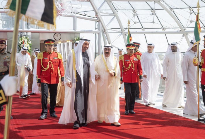 استقبل سمو أمير البلاد الشيخ مشعل الأحمد بقصر بيان ظهر أمس سمو الشيخ محمد بن زايد آل نهيان رئيس دولة الإمارات العربية المتحدة الشقيقة والوفد المرافق لسموه بحضور سمو ولي العهد الشيخ صباح الخالد وسمو الشيخ أحمد العبدالله رئيس مجلس الوزراء.