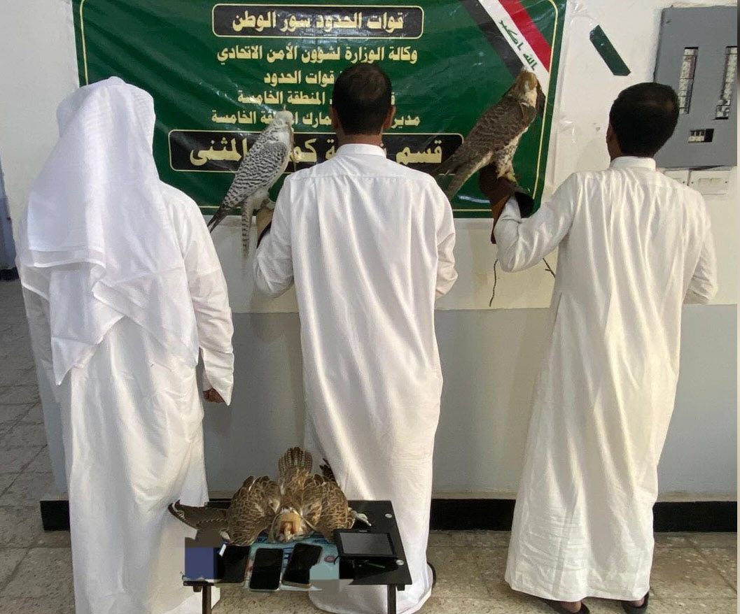 وذكرت وزارة الداخلية العراقية أن قيادة قوات الحدود تمكنت من القبض على ثلاثة صيادين كويتيين خالَفوا الضوابط والتعليمات الخاصة بالصيد في بادية محافظة المثنى، وضُبط بحوزتهم ثلاثة صقور تستخدم في عمليات الصيد. وأشارت إلى أنه قد تم اتخاذ الإجراءات القانونية تجاههم.