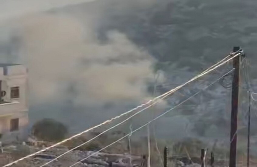 وإثر القصف الإسرائيلي على الموقع، اندلعت النيران، التي امتدت لتطال مركبة وشجرة زيتون في محيط المنطقة.