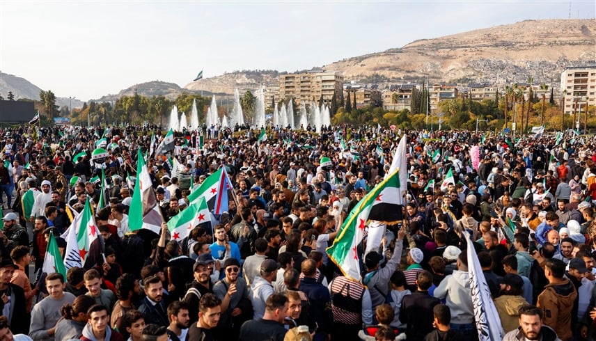 في دمشق، كما في مدن أخرى بينها حلب (شمال) وإدلب (شمال غرب) وحمص وحماة (وسط) وطرطوس واللاذقية (غرب)، خرجت تظاهرات حاشدة رفعت الأعلام السورية وردّد المشاركون فيها هتافات مؤيدة للشرع.