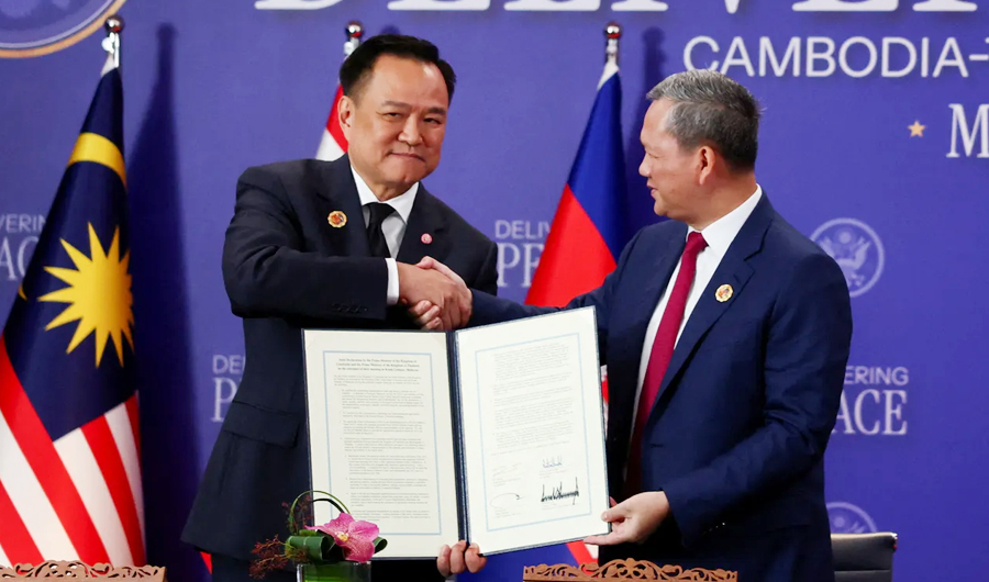 أعلنت وزارة الدفاع الكمبودية، اليوم السبت، أن تايلاند وكمبوديا وقعتا اتفاقًا لوقف إطلاق النار، وذلك بعد ثلاثة أيام من المحادثات بين الجارتين الواقعتين في جنوب شرق آسيا واللتين خاضتا اشتباكات حدودية عنيفة لأسابيع.