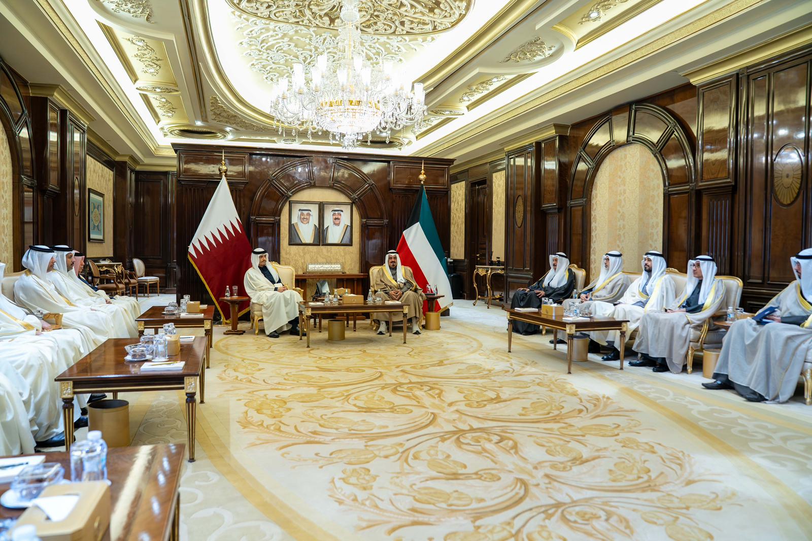 عقد سمو الشيخ أحمد عبدالله الأحمد الصباح رئيس مجلس الوزراء في قصر بيان اليوم جلسة مباحثات رسمية مع معالي الشيخ محمد بن عبدالرحمن بن جاسم آل ثاني رئيس مجلس الوزراء وزير الخارجية في دولة قطر الشقيقة.