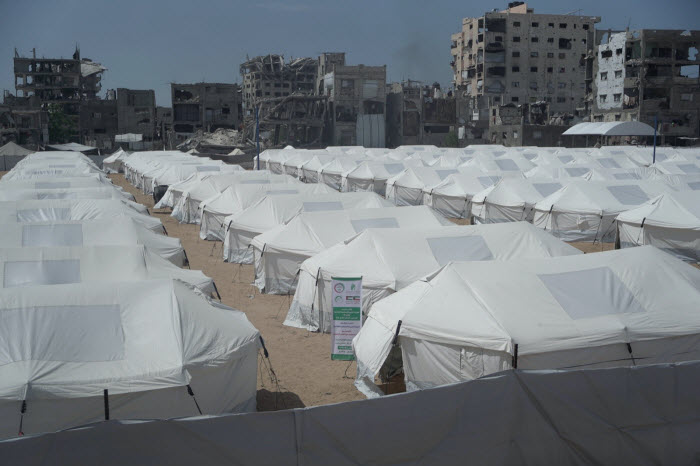 وقالت الهيئة في بيان صحفي أمس: إن المشروع يهدف إلى إنشاء 10 مخيمات إيواء متكاملة في مختلف مناطق قطاع غزة على مساحة 50000 متر مربع لإيواء 1000 أسرة بإجمالي نحو 7000 نازح مع إعطاء الأولوية للمناطق الأكثر تضرراً، مبينة أنه يتضمن أيضاً توفير 1000 خيمة سكنية مجهزة ومقاومة للعوامل الجوية وتتسع الواحدة منها لسبعة أفراد ومزودة بنظام صرف صحي متكامل.