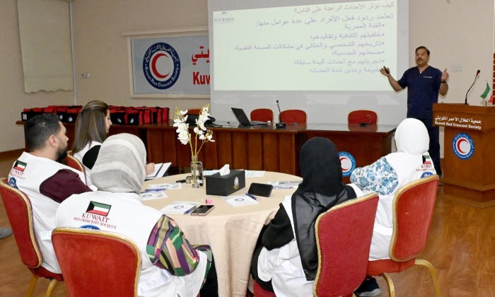 نظمت جمعية الهلال الأحمر الكويتي، أول أمس، ورشة عمل بعنوان (الإسعافات الأولية النفسية)، قدمها رئيس الجمعية الكويتية لإدارة الأزمات والطوارئ الدكتور فوزي الخواري بهدف رفع مستوى الوعي بأساليب الدعم النفسي خلال الأزمات.