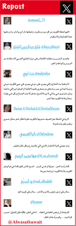 كشف المتحدث الرسمي لوزارة الدفاع العقيد الركن سعود العطوان عن أن ما تم رصده والتعامل معه جراء العدوان الإيراني على مختلف أجواء دولة الكويت بلغ 178 ... المزيد